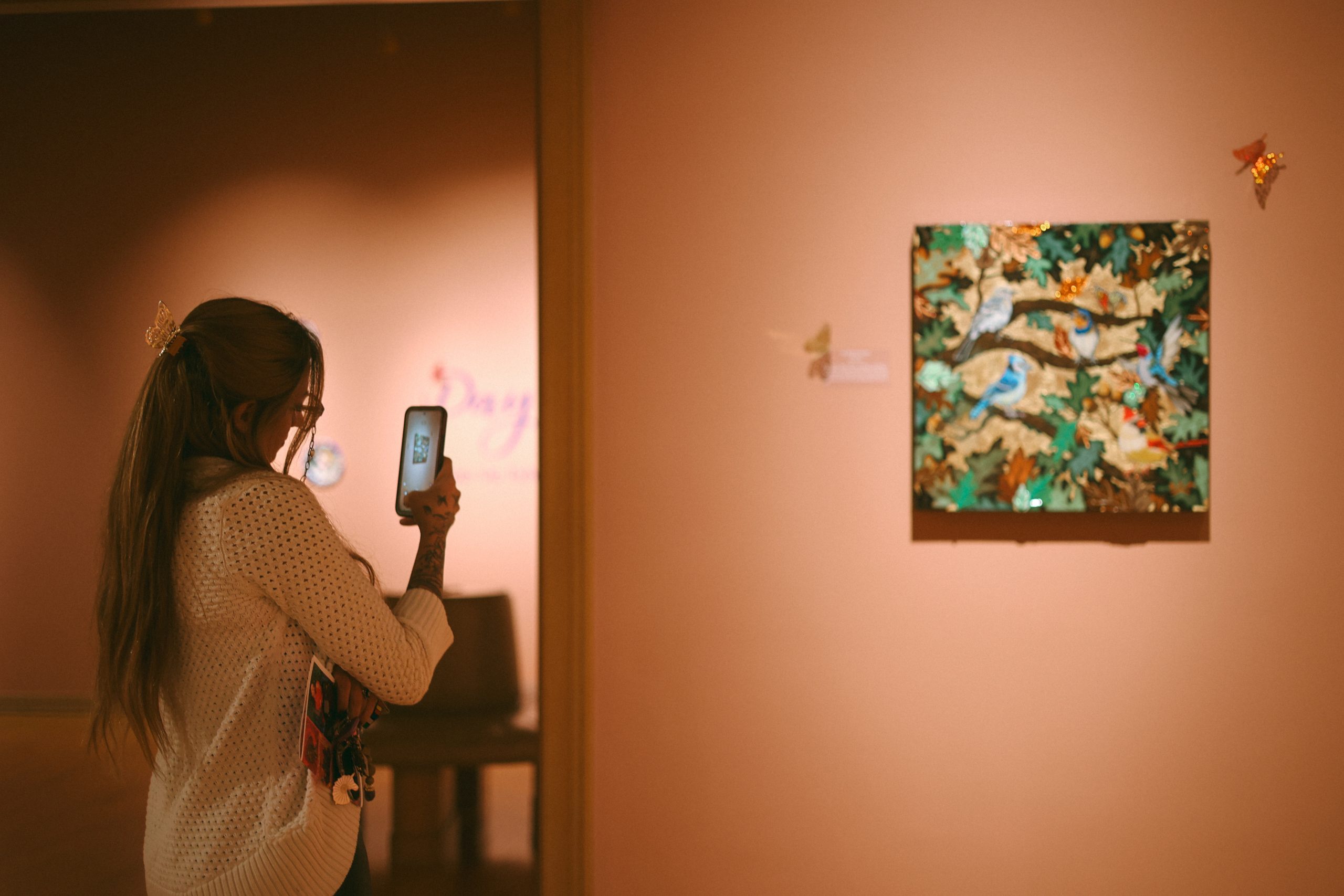 One of the best parts of the evening was having Whitney there in person. She spoke with guests about her creative process and what inspired the collection, making the experience feel even more meaningful. It’s always special when you can connect a face and a story to the work on the wall.