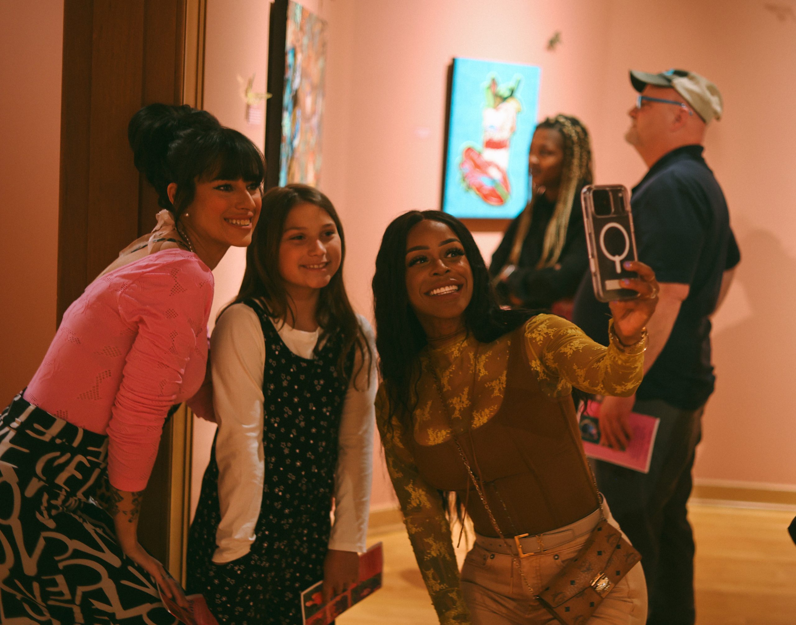 Guests filtered into the gallery with excitement, ready to see Whitney Pollock’s newest collection. The pop-up format gave the show a fresh, energetic feel, and the space quickly filled with friends, families, collectors, and supporters of both the artist and the museum.