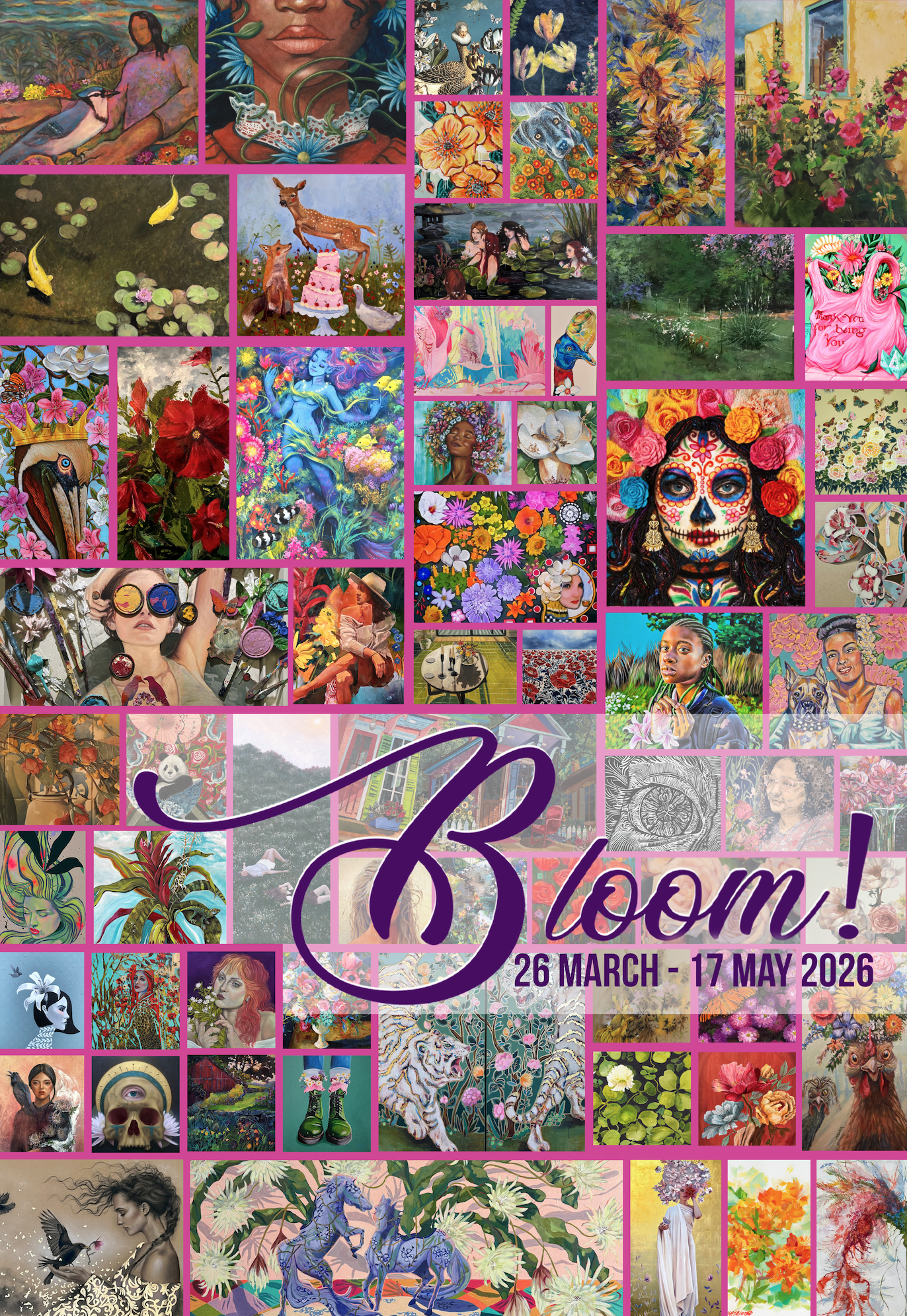 Now that all submitting artists have been notified, we can say that BLOOM! 2026 was out of this world! With 586 submissions, this was our largest year yet! Artists from 28 states and 9 countries submitted this year, making it extremely difficult for our judges to choose the 63 pieces that would be presented in this year`s exhibit.